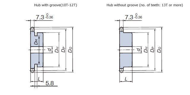 | 형번 | 잇수 | 피치원 지름 DP mm |