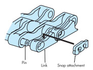 톱 플레이트와 체인 부분을 플라스틱으로 일체 성형하고, 피팅 핀으로 연결하고 있습니다.