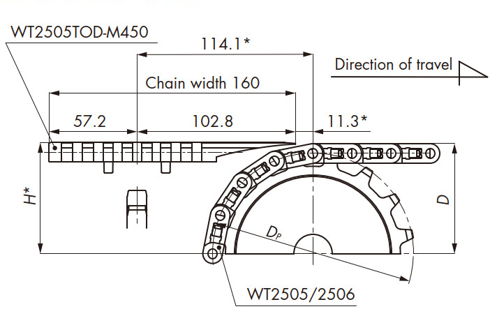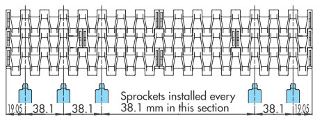 플라스틱 톱 체인 보다 작은 체인 피치(9.525~25.4mm)를 채용하고 있으므로, 스프로킷의 외경을 작게 할 수 있습니다.
