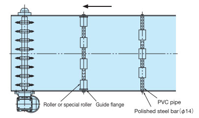 사용하는 체인 폭에 따라 롤러의 설치 간격(컨베이어 폭 방향)을 조정합니다.