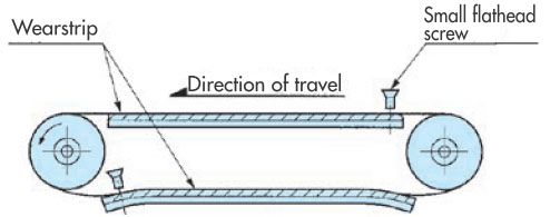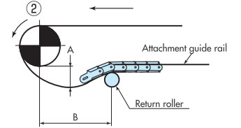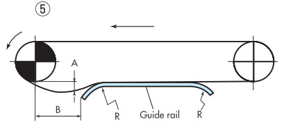 비행 부착 또는 고무 부착 체인의 돌아가는 쪽은 롤러 등으로 비행이 간섭하지 않도록 아래 그림과 같이 설치하십시오.