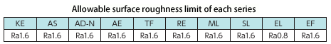 카탈로그에 기재하고 있는 하기의 값을 허용 한계치로 하고, 그것보다 거친 가공은 불가로 합니다. 축, 보스의 표면에 면압이 발생하면, 그 면압에 의해 표면의 요철은 압박되어 축·보스는 소성 변형이라고 생각됩니다.