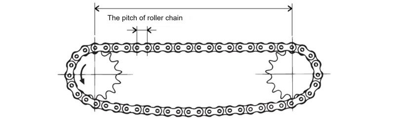 최단 거리는 두 스프로킷의 치아가 접촉하지 않으면 괜찮습니다. 가장 바람직한 양축의 중심 거리는 사용하는 롤러 체인의 피치의 30~50배 정도가 이상적입니다. 단, 변동하중이 걸릴 때는 20배 이하가 적당합니다. 롤러 체인의 피치의 30~50배 정도